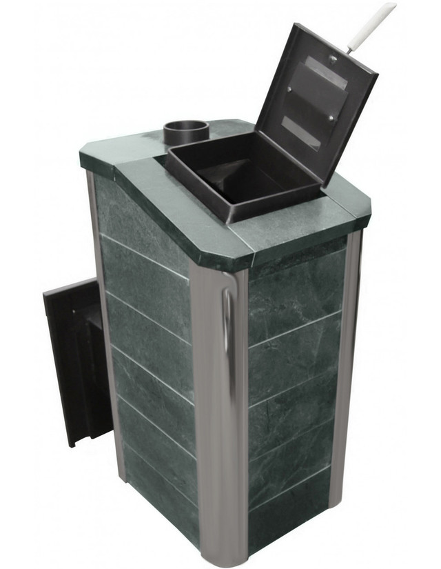 Терма Сказка — флагманская модель в линейке печей Варвара. Обклад из природного теплоемкого камня талькохлорита или змеевика не позволяет сильно перегревать воздух в парной, а камни, закладываемые внутрь печи (около 70 кг), нагреваются сильнее чем в печах с открытой закладкой и на выходе получаем режим, приближенный к русской бане. Открыванием дверцы можно регулировать температуру в парной по своему желанию.