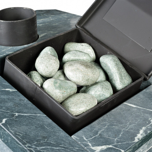 В Терма Сказке камни закладываются не только по периметру топки, но и в, так называемую, "закрытую каменку". Камень в закрытой каменке нагревается до более высокой температуры, чем в открытой каменке. Это позволяет получить мягкий мелкодисперсный пар.
