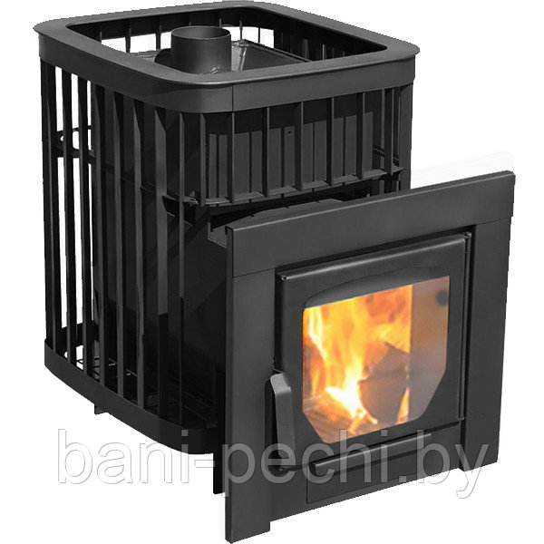 Топка, кожух конвектор, дверь и зольный ящик изготовлены из стального проката, усиленные в участках подверженных наибольшей деформации гибкой. Рядом с отсеком для закладки камня находится патрубок для подключения дымохода.